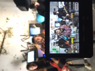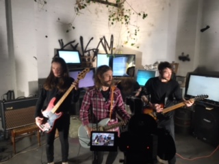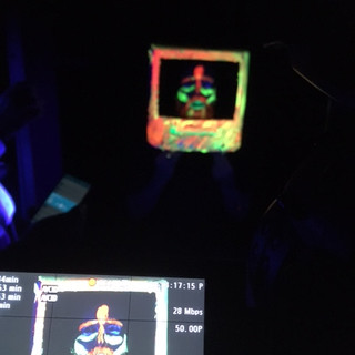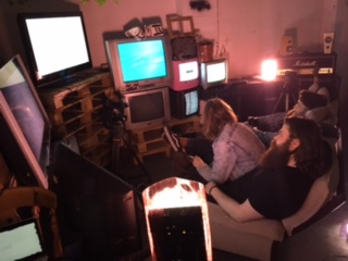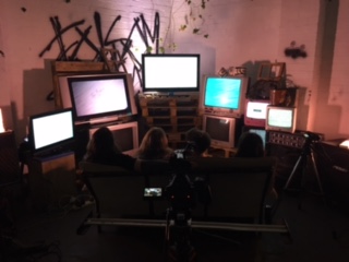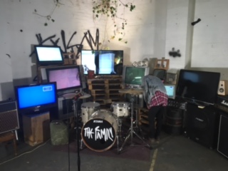 Its time for you to become the beg, borrow and steal filmmaker. From the photos you can see all the TVs in shot, which were recycled by me and the band, to make the background of the shoot. Equipment, I filmed this on a C100 with a 10mm fish eye, 50MM prime, and a 18 – 135, LED lights and a slider, all borrowed from work, friends and colleagues. Sound system, the band solved this problem getting a music tech friend to organize a PA system for the shoot. Never underestimate the friendships and comradely around rock music, people come through, help out or just want to be a part of something that has the opportunity to be something special. Next the UV paint, again the band bought all this and on the day we came up with the face designs and ways in which this was going to work in the video.